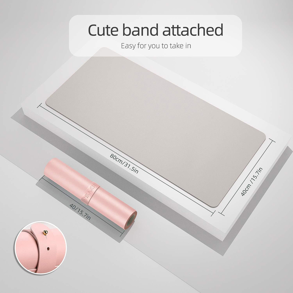 Dual-Sided Multifunctional Desk Pad, Waterproof Desk Blotter Protector, Leather Desk Wrting Mat Mouse Pad (31.5" x 15.7", Pink)