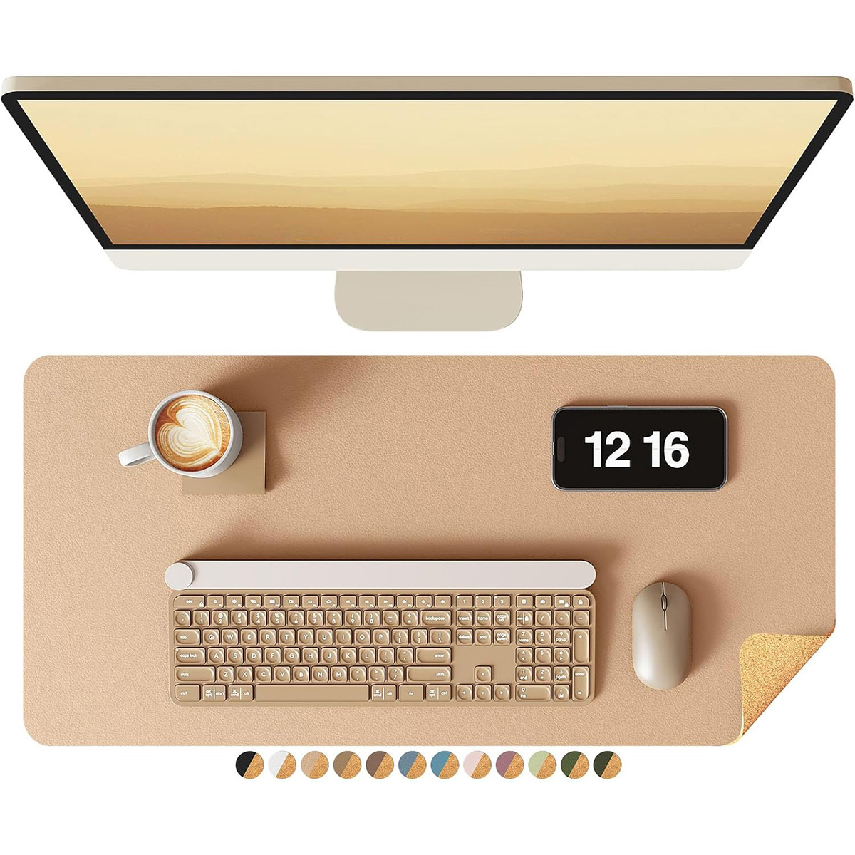 Double-Sided Desk Pad, Leather Desk Mat, Eco Cork Desk Pad Protector, Writing Pad for Office/Home(23.6"x13.7",Apricot)