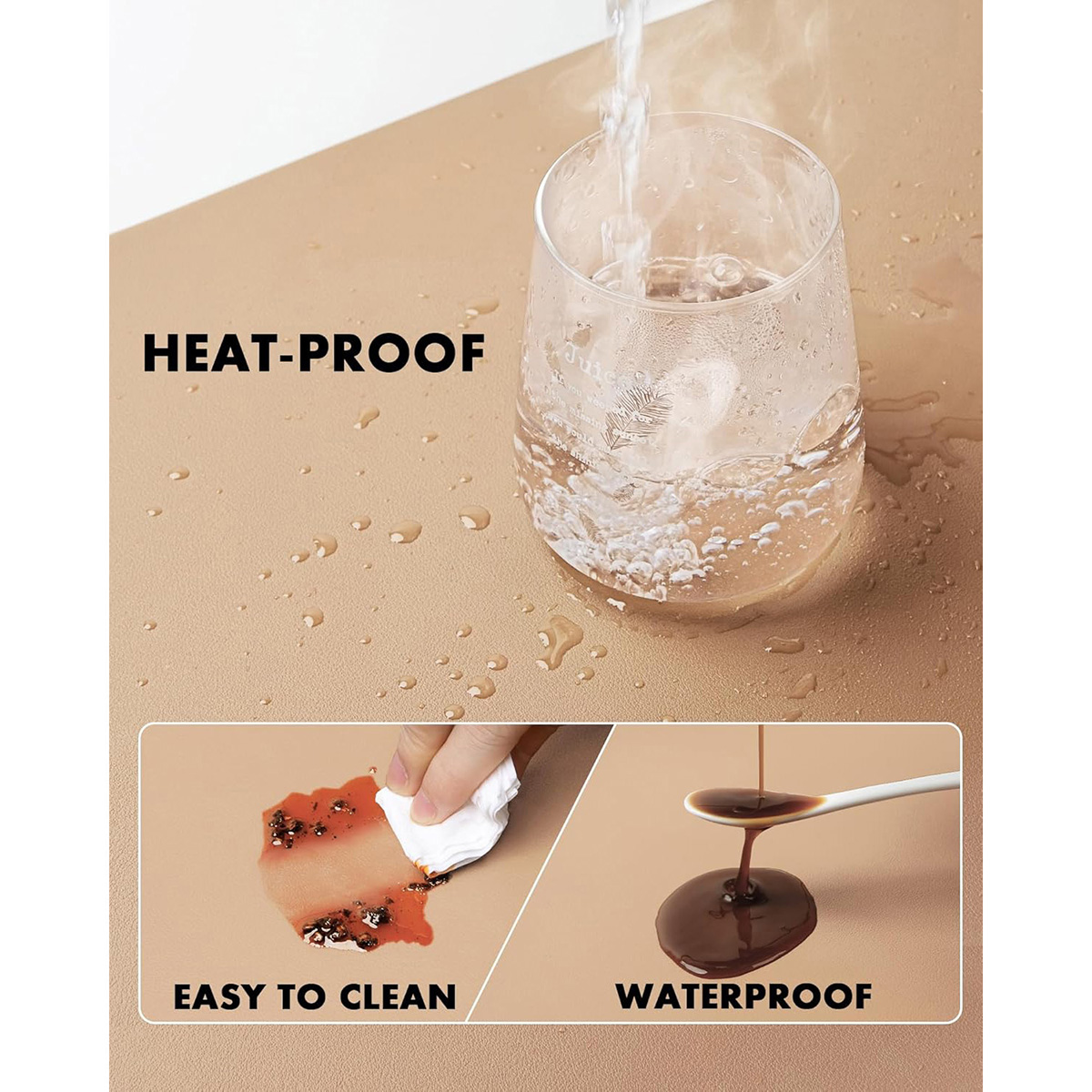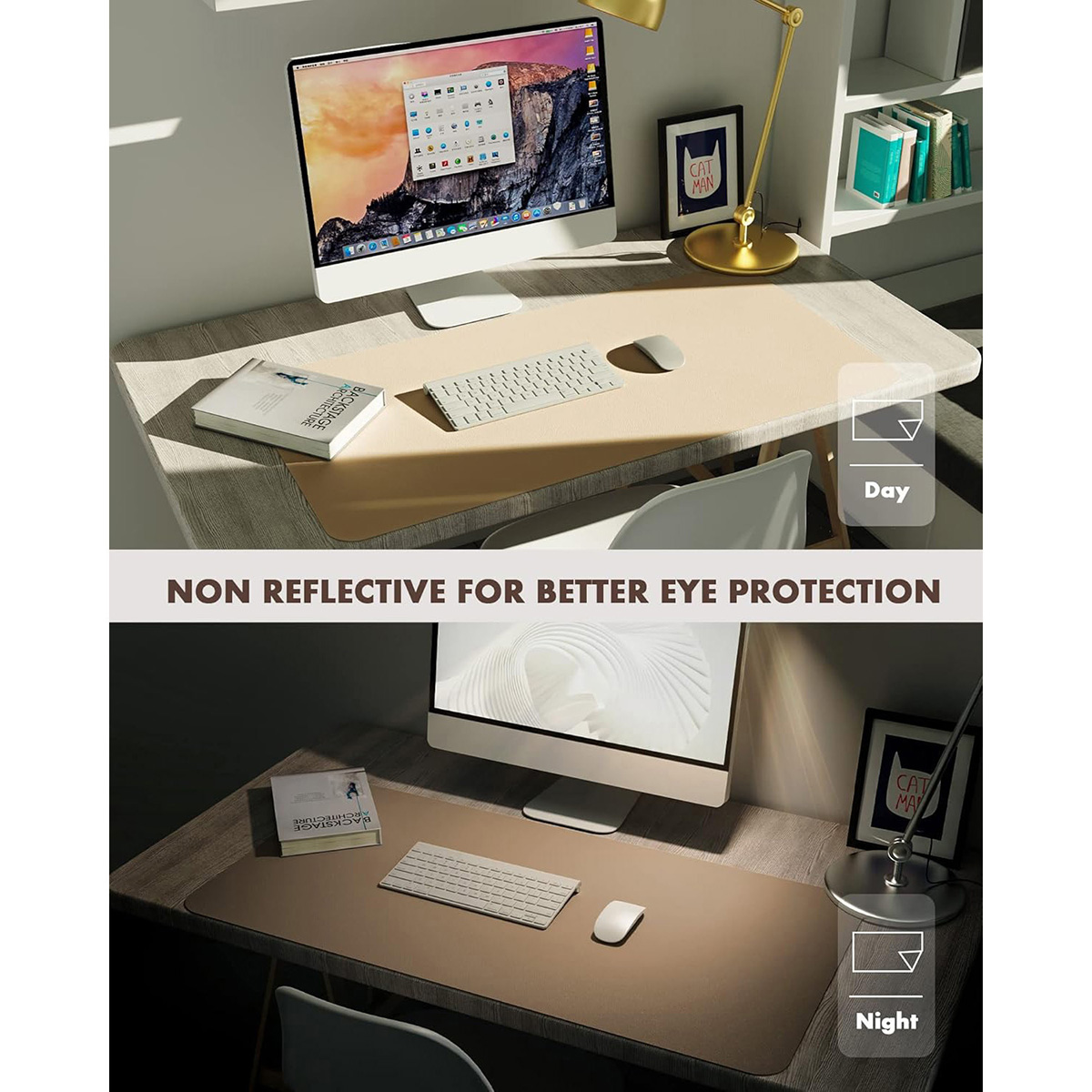 Double-Sided Desk Pad, 31.5"x15.7"Leather Desk Mat, Eco Cork Desk Pad Protector,Waterproof Desk Blotter for Office/Home(Apricot)