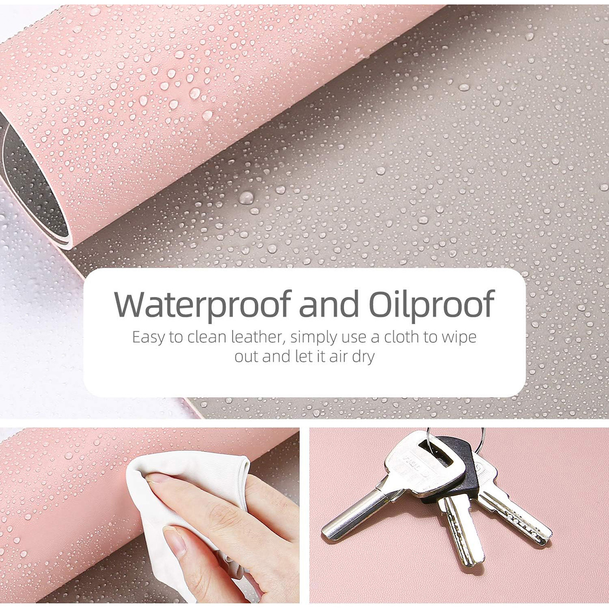 Dual-Sided Multifunctional Desk Pad, Waterproof Desk Blotter Protector, Leather Desk Wrting Mat Mouse Pad (31.5" x 15.7", Pink)