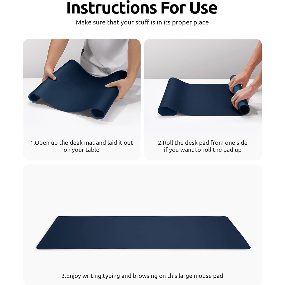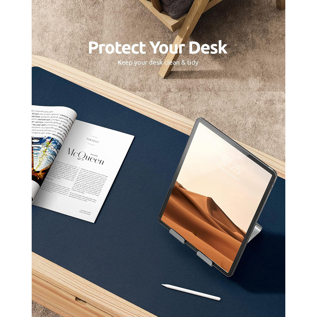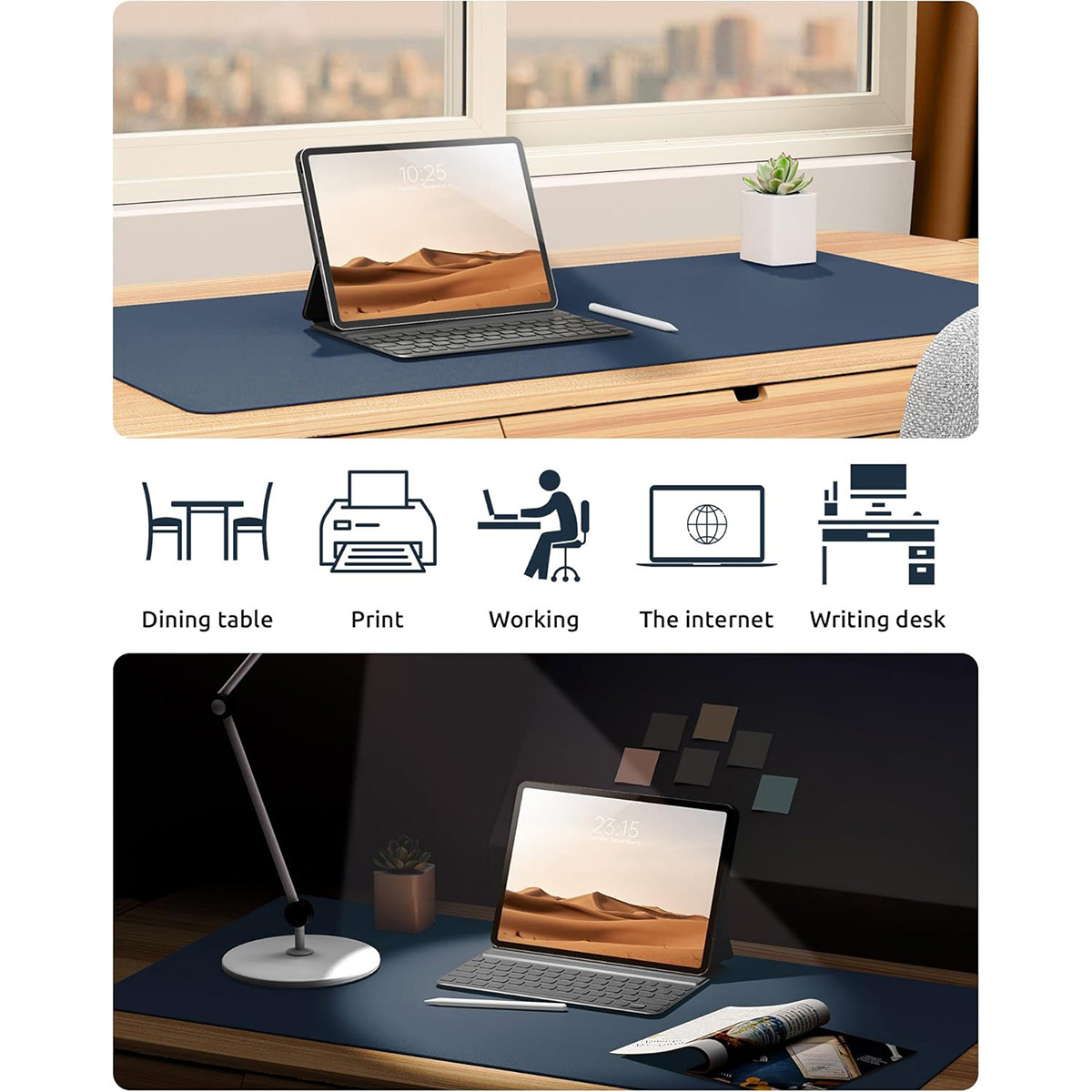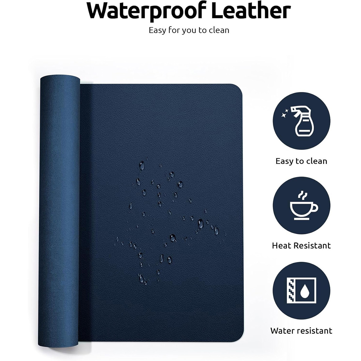 Leather Desk Protector, Office Mat, Laptop Desk Mat, Waterproof Writing Pad for Office and Home (Dark Blue, 23.6" x 13.8")