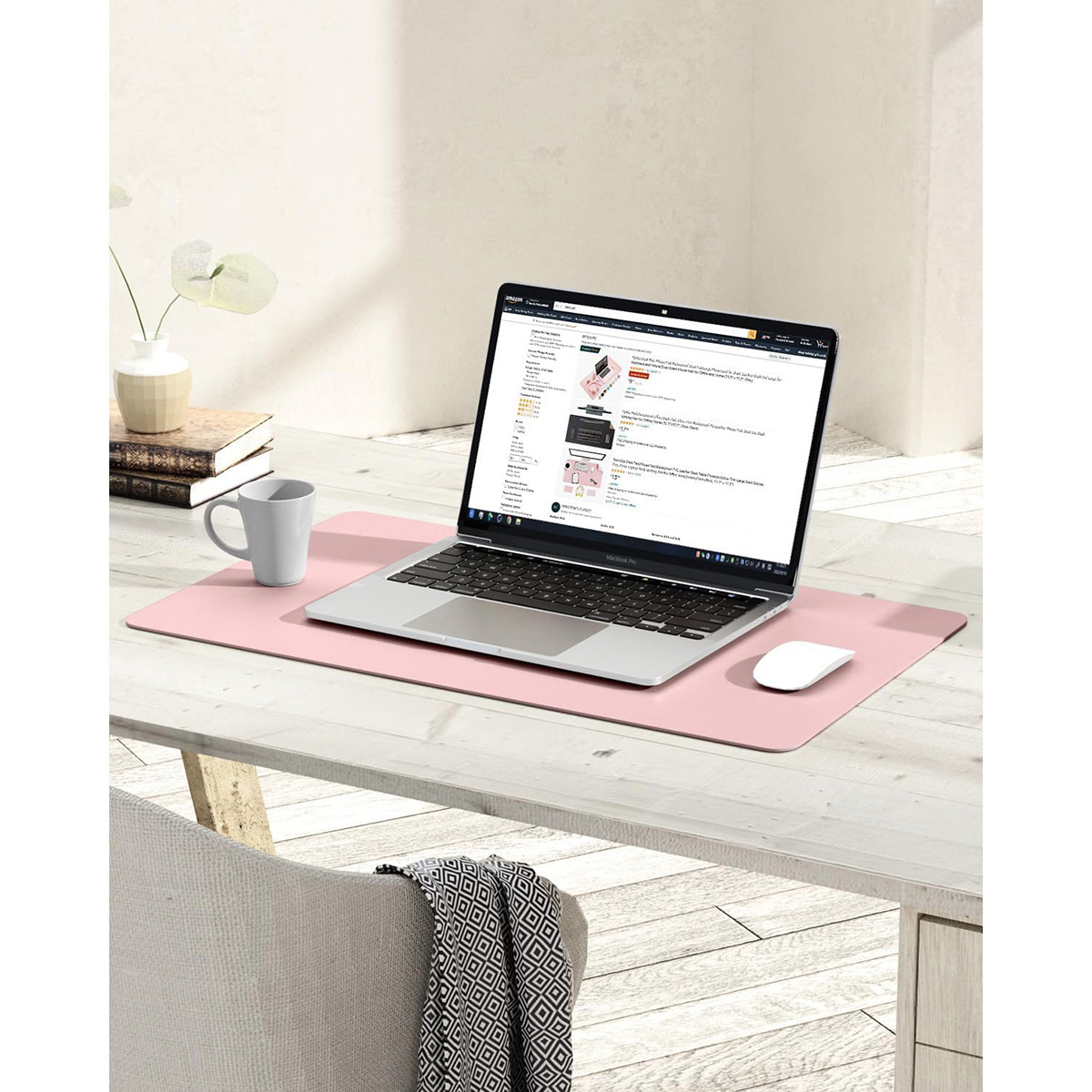 Non-Slip Leather Desk Pad, Waterproof Laptop Computer Desk Keyboard Mat, Large Mouse Pad for Office/Work/Home/Decor(Pink, 23.6" x 13.7")